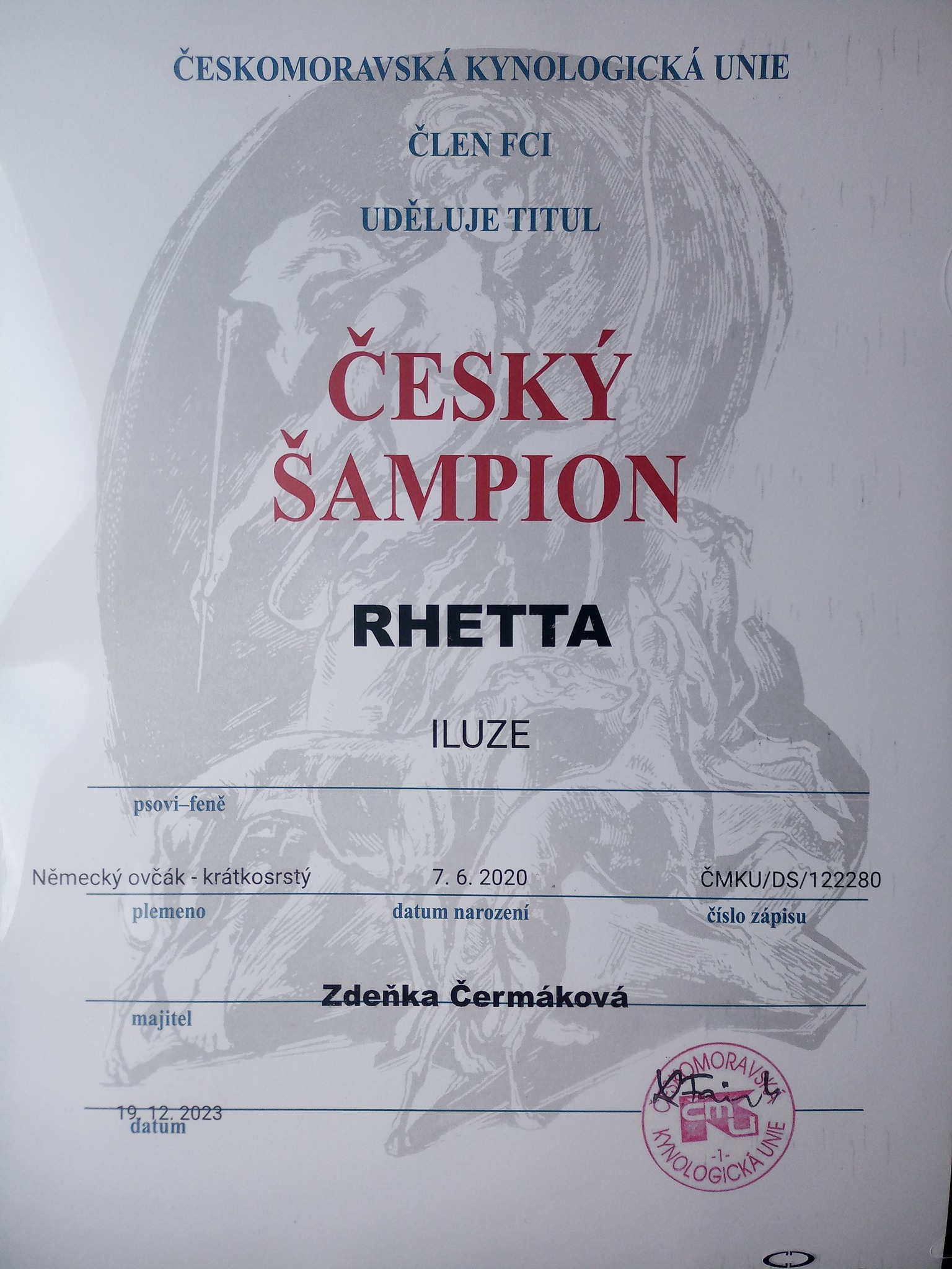Rhetta Iluze (Tim Mihapa x Hermína Iluze) vyběhala na výstavě Tri Cacib Praha vítězství se spoustou titulů CAC, CACIB a BOB, zároveň byla nominována na světovou Cruft výstavu do Anglie. Veliká gratulace majitelce Zdeňce Čermákové