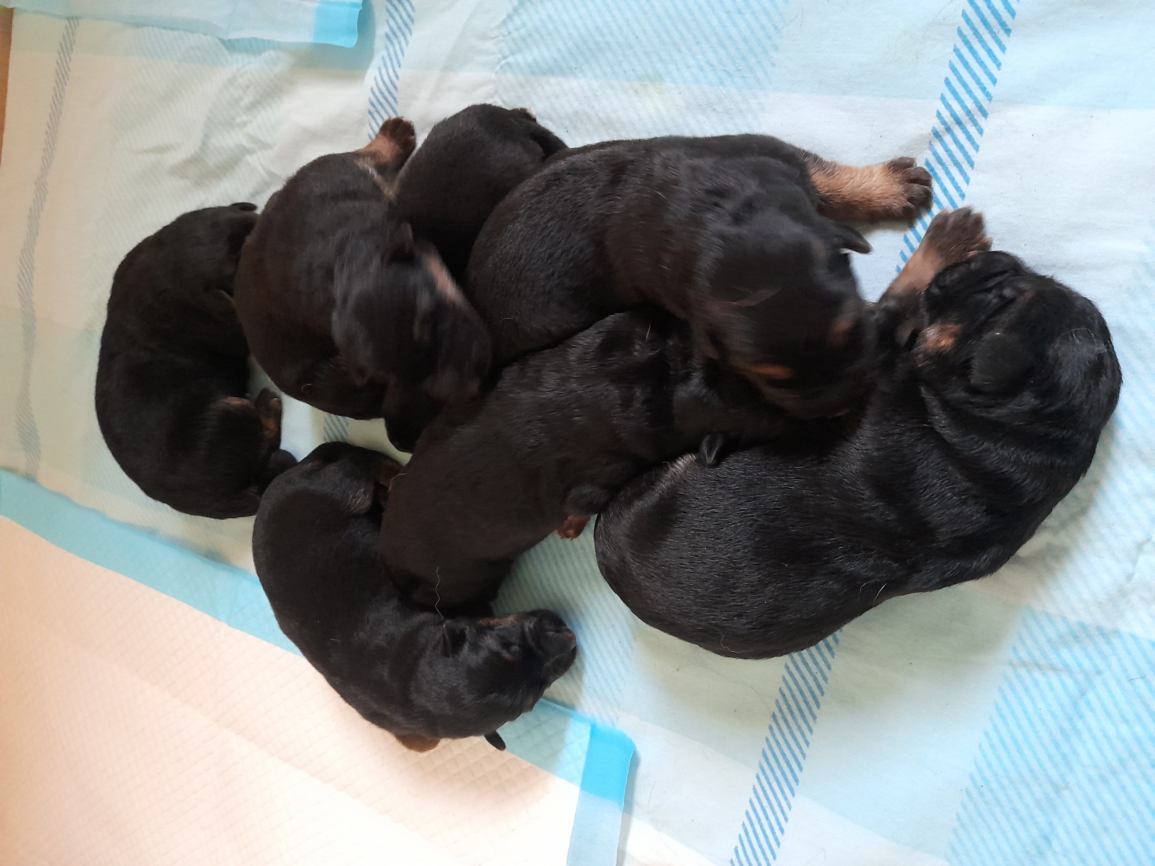 Sedmý týden je za náma, štěňátka jsou naočkovaná, načipovaná, poslední kontroly provedeny, tráví poslední společné chvíle , než se začnou rozjíždět do nových domovů