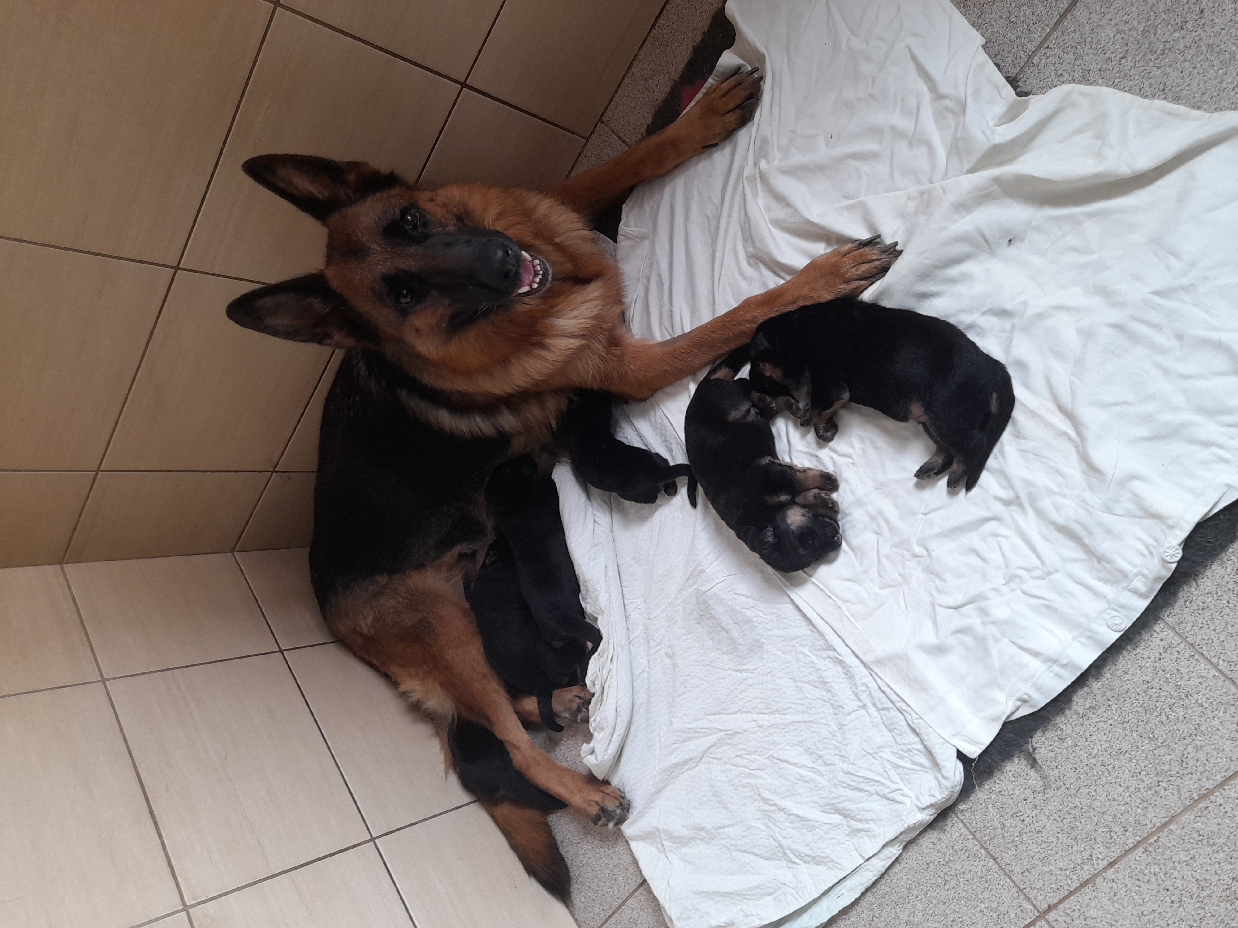 První týden života mají naše děti za sebou, Justýnka je skvělá máma, všichni prospívají, jsou to moc spokojená štěňátka.