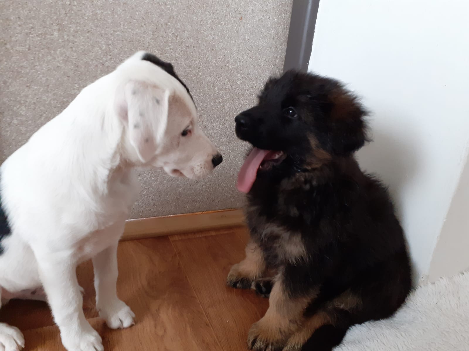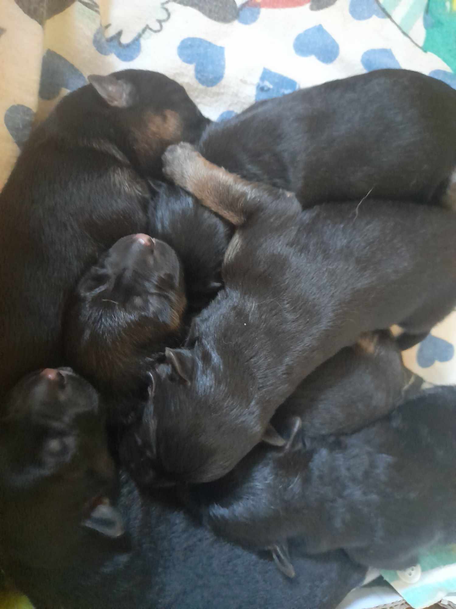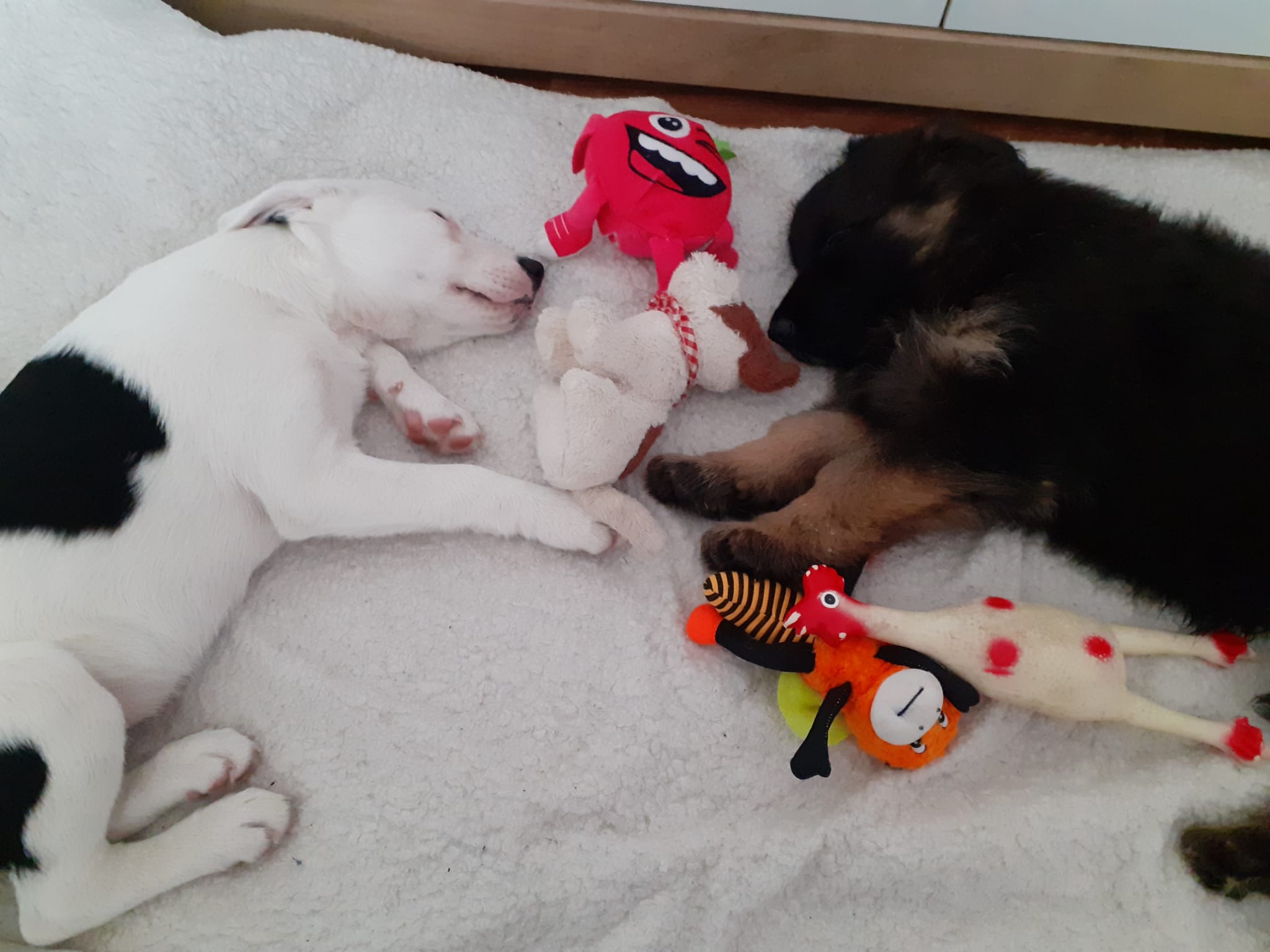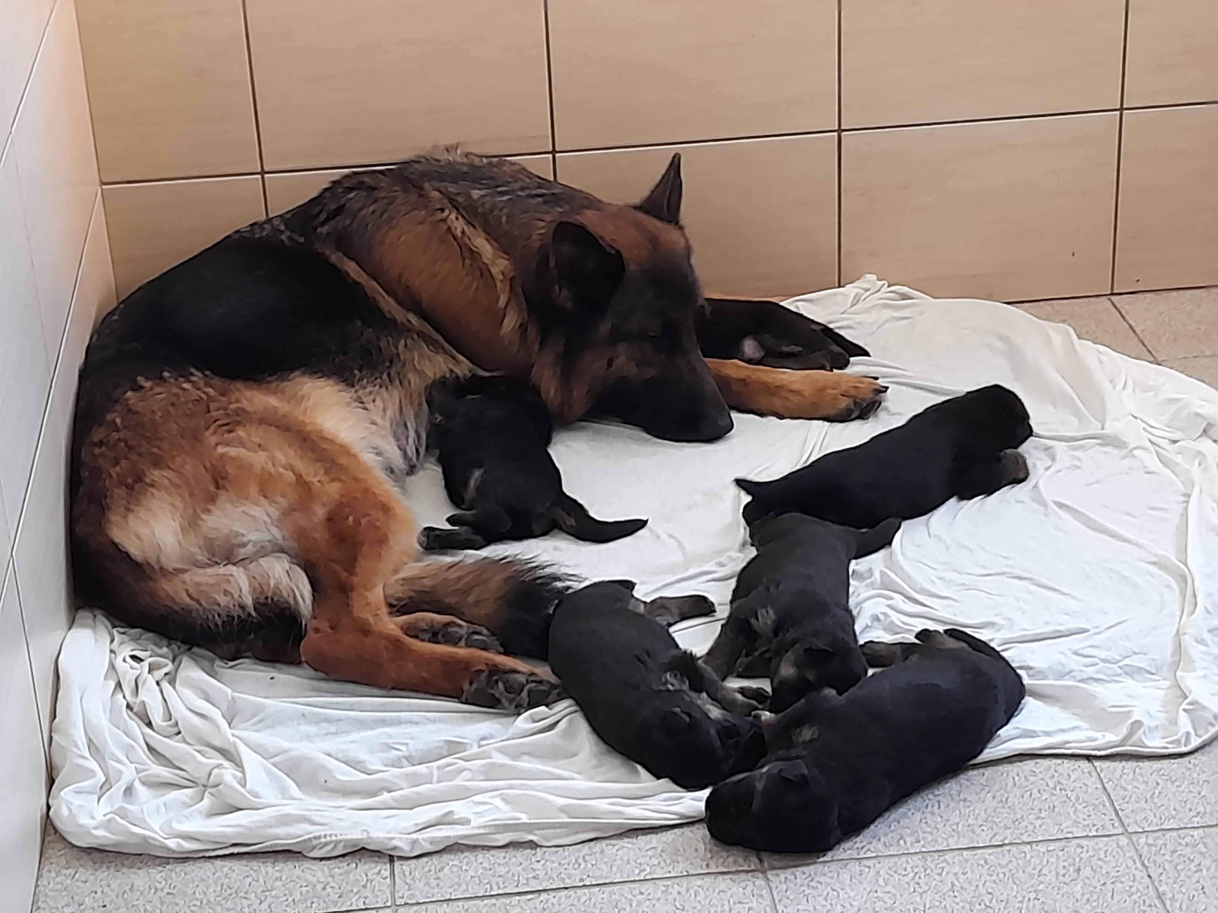 První dva týdny mají štěňátka za sebou, s tím spojené odčervení, stříhání drápků, děti výborně prospívají 🙂