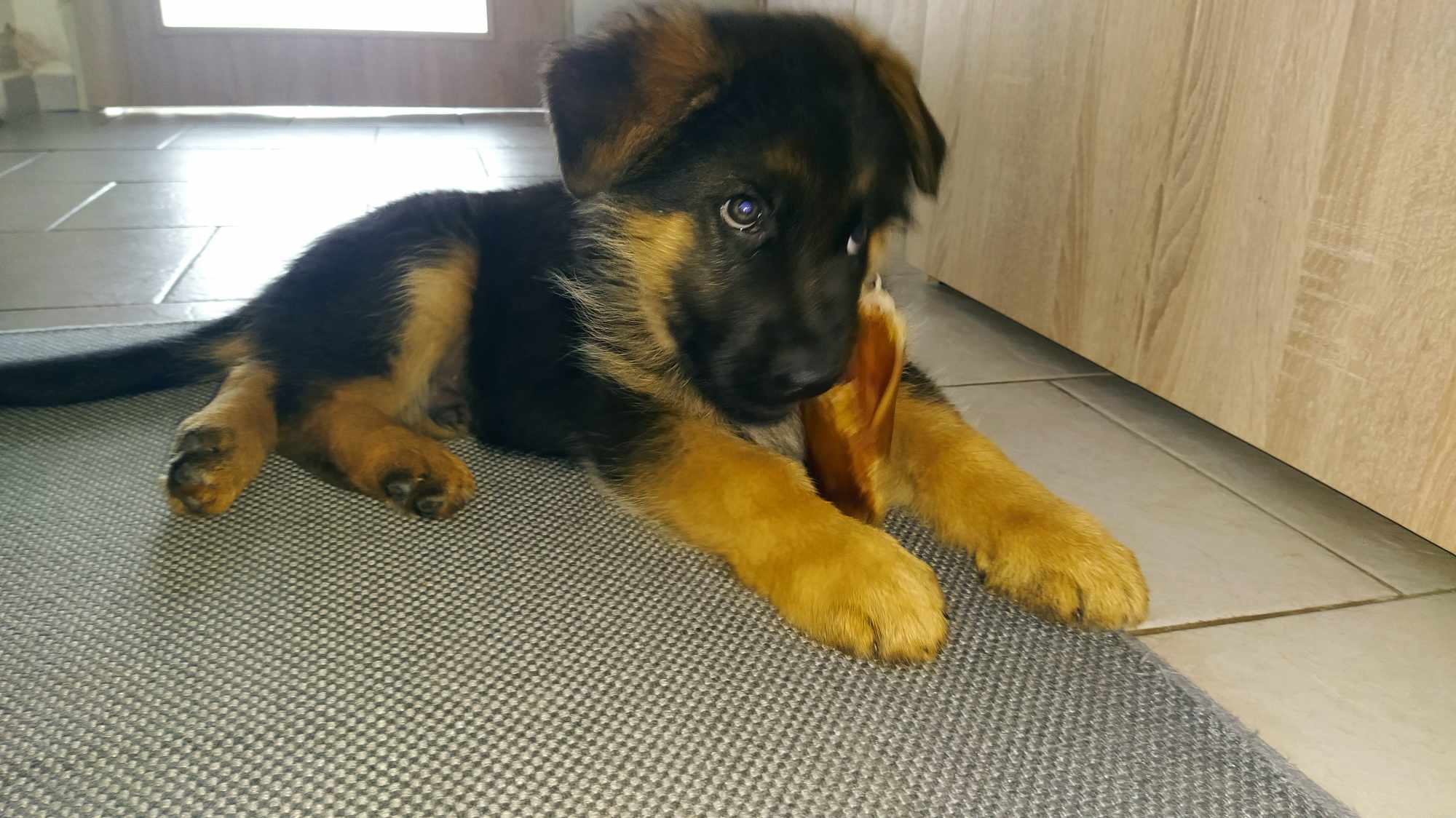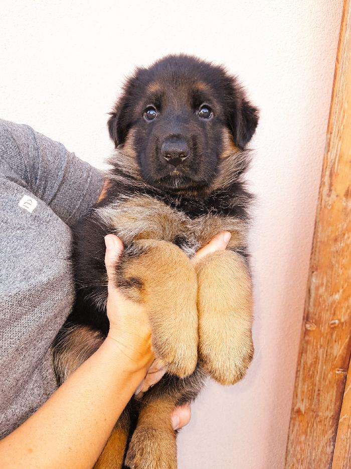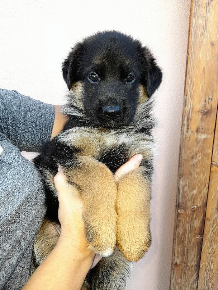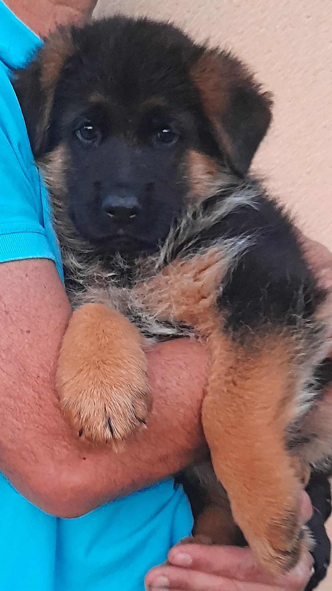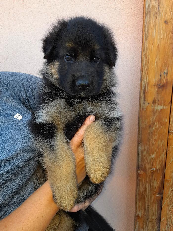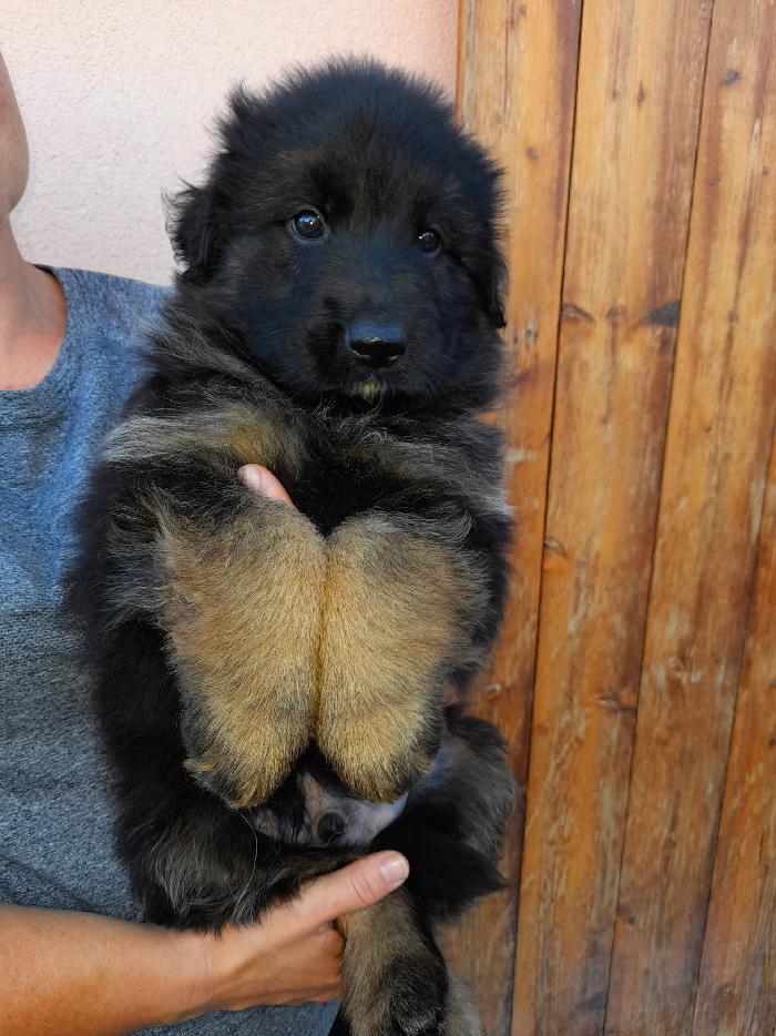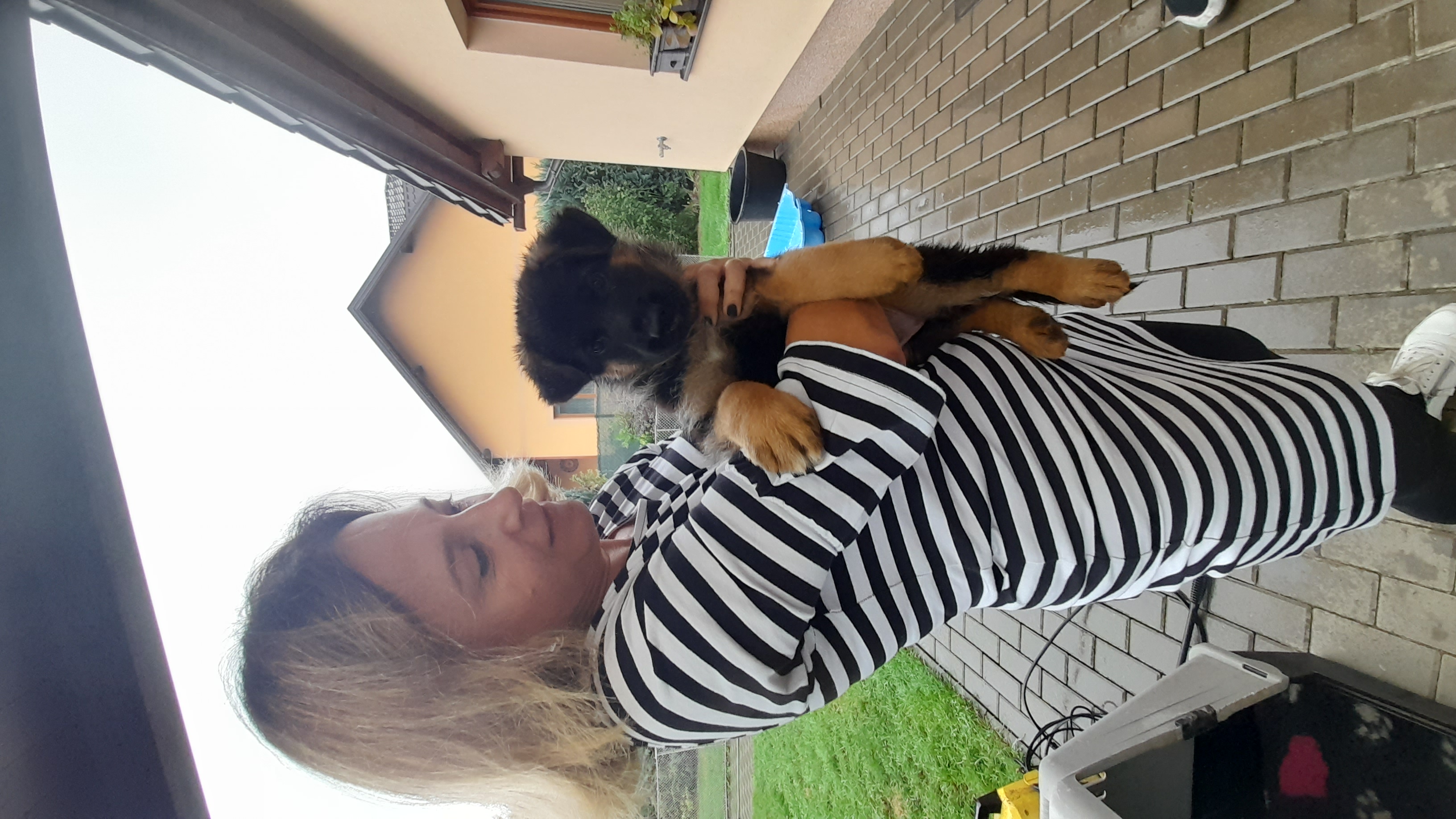 Pět týdnů, rostou z nich nádherní typičtí němečtí ovčáci s velkým potenciálem jak ve výcviku, tak na poli výstavním
