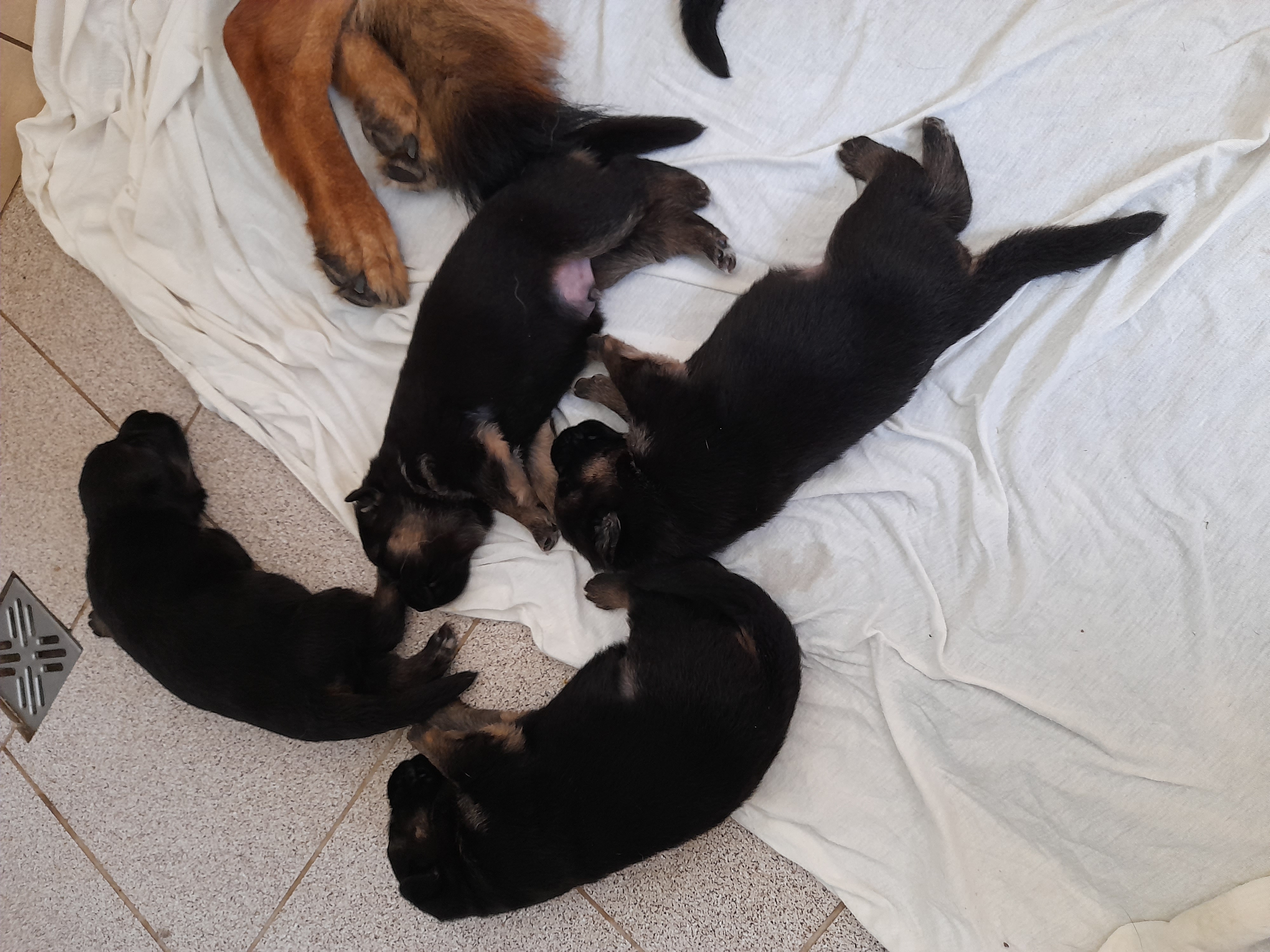 11.8.2023 se narodila štěňátka naší Priscille Iluze – 4 pejskové a 2 fenky. Otec štěňat je nádherný pes s velkou silnou hlavou, silné kostry, klubový vítěz let 2022 a 2023, pes s razantní obranou, pevnými zákusy, vyrovnané povahy Arre Hartis Bohemia. Na klubové výstavě předvedl ve svých dvou letech jednu z nejlepších obran.