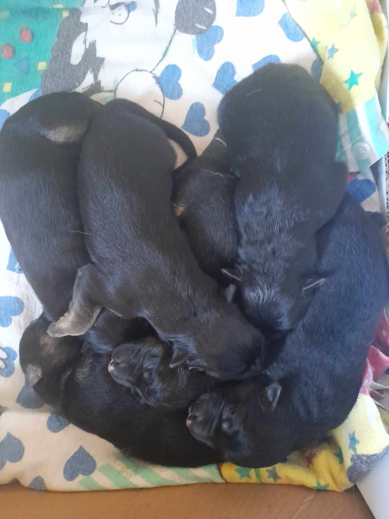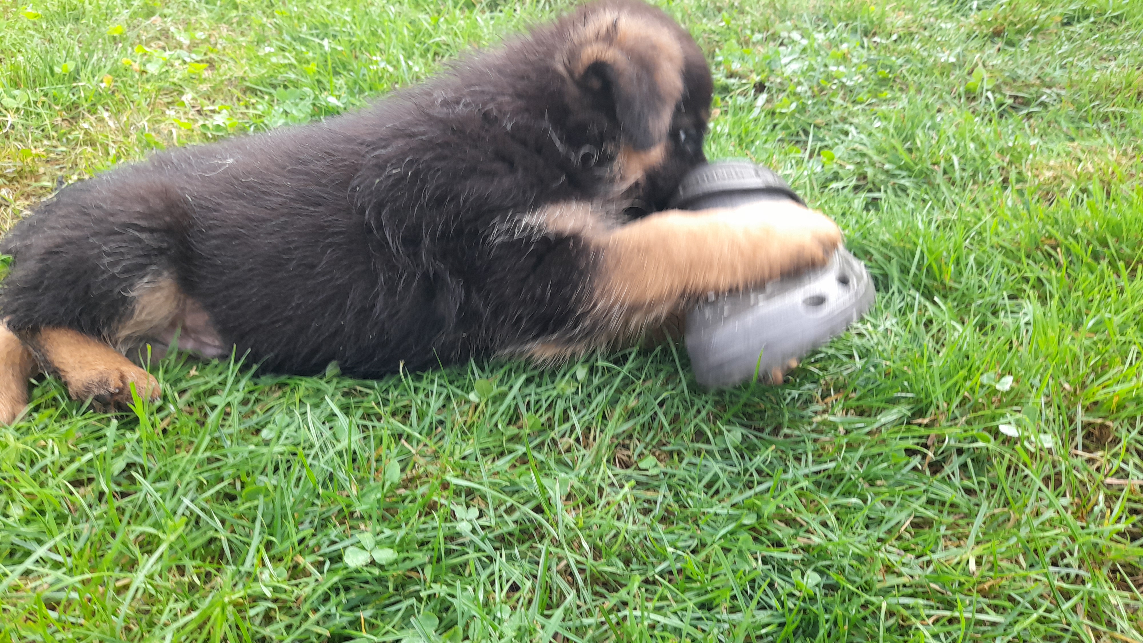 Je tady čtvrtý týden, štěňátka začínají mezi sebou bojovat, zajímají se o hračky, čeká je další odčervení 🙂