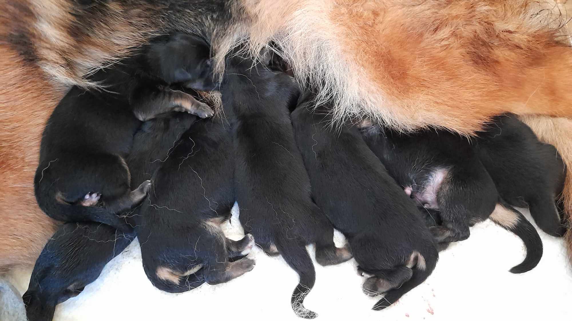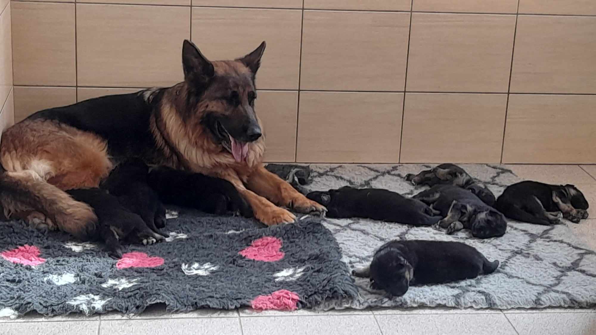 16.3.2024 se v naší chovatelské stanici narodila naší Priscille Iluze štěňátka, 5 fenek a 3 pejskové, otcem je pes, zařazený v Čechách i na Slovensku do výběrové třídy na klubových výstavách vítězů, mnohonásobný vítěz třídy, oblastní, krajský vítěz Nemo Mir – Jar. Nemo vyniká velmi sytým pigmentem, tmavým okem v černé hlavě, výrazným pohybem, skvělou anatomií. Povahově vyrovnaný, velmi lehce cvičitelný, o čemž svědčí složena nejvyšší zkouška dle mezinárodního zkušebního řádu IGP3. Na klubových výstavách předvádí vždy jednu z nejlepších obran. Nemo byl již v našem chovu úspěšně využit, kdy s Justýnou Iluze dal velmi kvalitní T vrh, z něhož v naší chs zůstala Tamira Iluze.