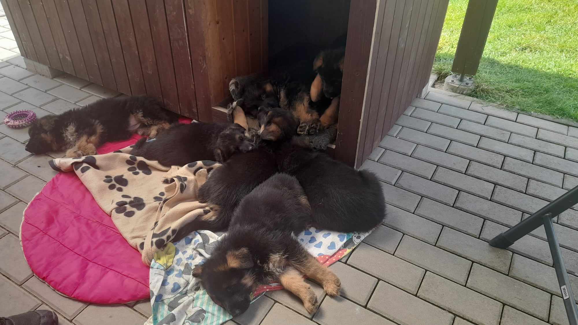 Oba rodiče jsou vyšetřeni na degenerativní myelopatii, štěňata nebudou postižena tímto závažným onemocněním.